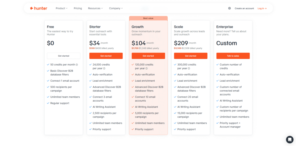 Hunter IO follows a freemium model, offering both free and paid plans.