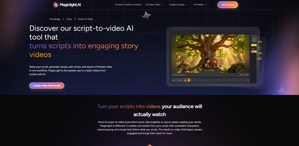 At its core, MagicLight AI is not just another basic text-to-video generator; it is a complete, all-in-one AI movie maker. While competitors limit you to generating single, disconnected scenes, this platform is specifically engineered for long-form content creation. It seamlessly bridges the gap between scriptwriting, animation, voiceover, and final editing.